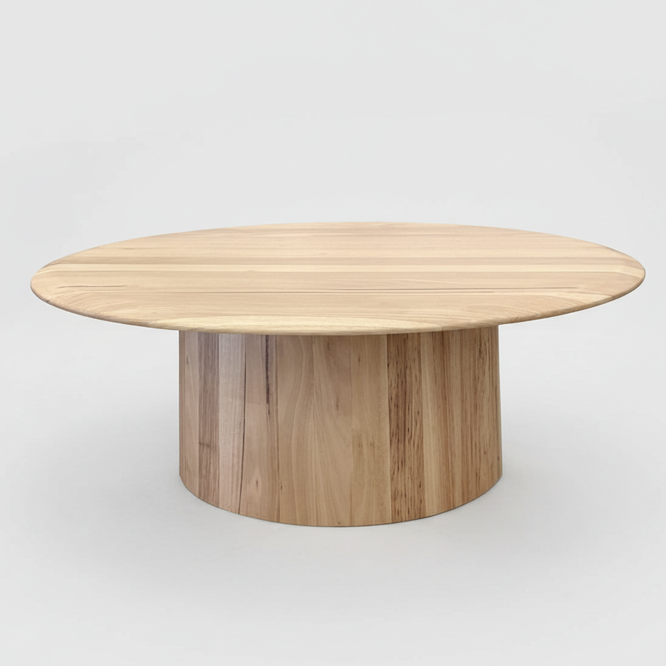 The Torre round coffee table features a solid construction made from Blackbutt hardwood timber.