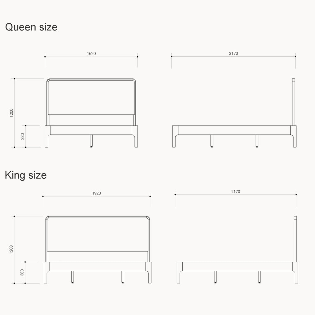King Bed Frame: 1920(W) x 217(D) x 120(H) cm