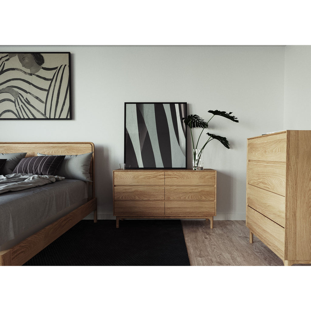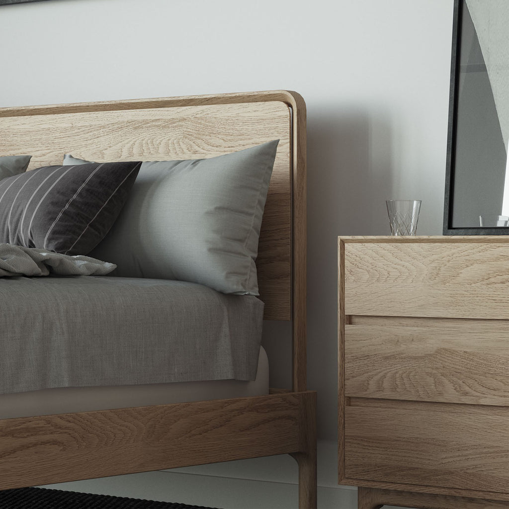 Discover refined contemporary elegance with the Evans bedroom collection. Made from high-quality American oak, each piece features clean, modern lines for a polished and sophisticated appearance. This range includes roomy chest of drawers, minimalist bedside tables, and elegant bedframes, all designed to transform your bedroom into a serene and luxurious retreat. With its natural wood hues and understated style, the Evans collection creates a peaceful yet stylish atmosphere. Meticulously crafted with smooth finishes and fine details, it combines lasting quality with aesthetic appeal—an expert choice to enhance your bedroom space.